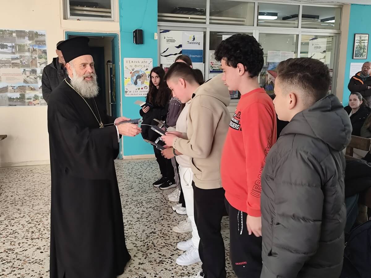 Με χαρά και ζωντανό ενδιαφέρον για τους μαθητές, ο Σεβασμιώτατος Μητροπολίτης μας κ. Τιμόθεος επισκέφθηκε το πρωί της Τρίτης 25 Νοεμβρίου 2025, τις σχολικές μονάδες Βαμβακούς, Ευυδρίου και Φαρσάλων, προκειμένου να προσφέρει στους μαθητές της Α΄ Γυμνασίου την Καινή Διαθήκη, ως πολύτιμο βοήθημα για το μάθημα των Θρησκευτικών και ως πνευματικό στήριγμα για τη ζωή …