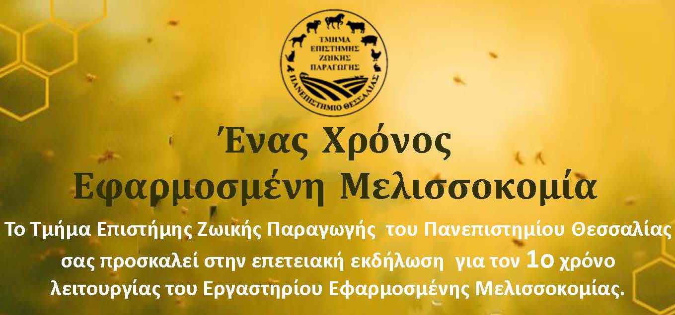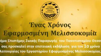 Το Τμήμα Επιστήμης Ζωικής Παραγωγής του Πανεπιστημίου Θεσσαλίας σας προσκαλεί στην επετειακή εκδήλωση για τον 1ο χρόνο λειτουργίας του Εργαστηρίου Εφαρμοσμένης Μελισσοκομίας, την Πέμπτη 22 Μαΐου 2025 και ώρα 18:00, Συγκρότημα Γαιόπολις, Λάρισα. Πρόγραμμα Εκδήλωσης: Αίθουσα 12, Τμήμα Επιστήμης Ζωικής Παραγωγής 18.00: Έναρξη της Εκδήλωσης – Χαιρετισμοί 18.15: Ανασκόπηση του Πρώτου Χρόνου Λειτουργίας του Εργαστηρίου …