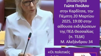 Η Επιτροπή Ειρήνης Καρδίτσας με αφορμή την παγκόσμια ημέρα ποίησης οργανώνει την Τρίτη 18 Μάρτη 2025, ώρα 7μ.μ. στη μουσική σκηνή «Οδός Ονείρων» (Βάλβη 57, Καρδίτσα) εκδήλωση με τίτλο: «Με σημαία την ποίηση και το τραγούδι δυναμώνουμε τον αντιπολεμικό αγώνα». Η εκδήλωση οργανώνεται σε μια περίοδο που πόλεμοι στην γειτονιά μας βρίσκονται σε εξέλιξη. Περιλαμβάνει …