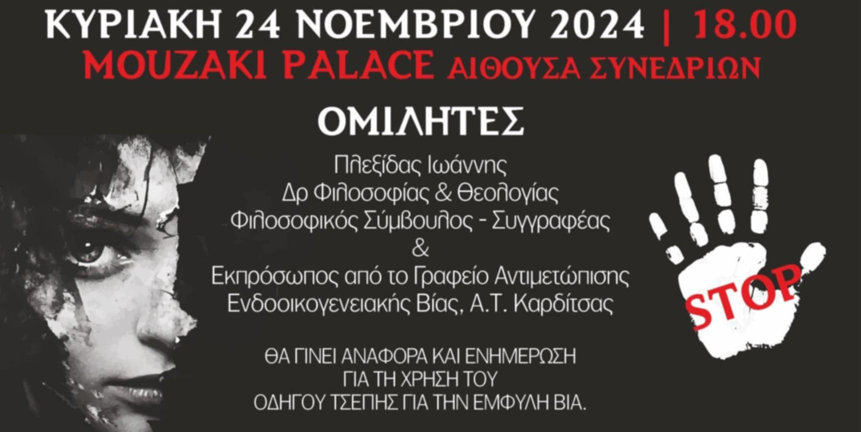 Eνημερωτική εκδήλωση στο Μουζάκι με αφορμή τη Διεθνή Ημέρα για την Εξάλειψη της Βίας κατά των Γυναικών