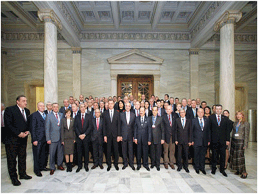 Τα κοινοβουλευτικά μέλη των 12 χωρών της Κοινοβουλευτικής Συνέλευσης του Οργανισμού Συνεργασίας Εύξεινου Πόντου. Στη φωτογραφία ο Πρόεδρος της Βουλής των Ελλήνων Ευάγγελος Μεϊμαράκης, ο Πρόεδρος του Κοινοβουλίου της Μολδαβίας Igor Corman, ο πρώην Πρόεδρος της Βουλής των Ελλήνων Δημήτρης Σιούφας και ο πρώην Υφυπουργός Σίμος Κεδίκογλου.