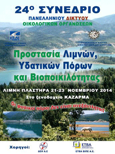 Το Πανελλήνιο Δίκτυο Οικολογικών Οργανώσεων (ΠΑΝΔΟΙΚΟ), που περιλαμβάνει πάνω από 80 οικολογικές οργανώσεις από όλη την Ελλάδα, σε συνδιοργάνωση με την ΚΕΔΕ, θα πραγματοποιήσει το 24ο Πανελλήνιο Συνέδριό του στη Λίμνη Πλαστήρα (Ξενοδοχείο Καζάρμα), το τριήμερο 21-23 Νοεμβρίου 2014, με θέμα : «Προστασία Λιμνών, Υδατικών Πόρων και Βιοποικιλότητας» Το Συνέδριο αυτό είναι το 10ο που …