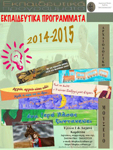 H ΛΔ΄ ΕΠΚΑ σας ενημερώνει ότι κατά τη διάρκεια του νέου σχολικού έτους 2014-2015 θα συνεχίσει τις επιτυχημένες εκπαιδευτικές δράσεις στους χώρους του Αρχαιολογικού Μουσείου Καρδίτσας. Στόχος των δράσεων μας είναι να δοθούν στους μαθητές τα κατάλληλα ερεθίσματα, ώστε μέσα από την αφήγηση, την διάδραση και το παιχνίδι να αναπτύξουν τη δημιουργικότητα και την κριτική …