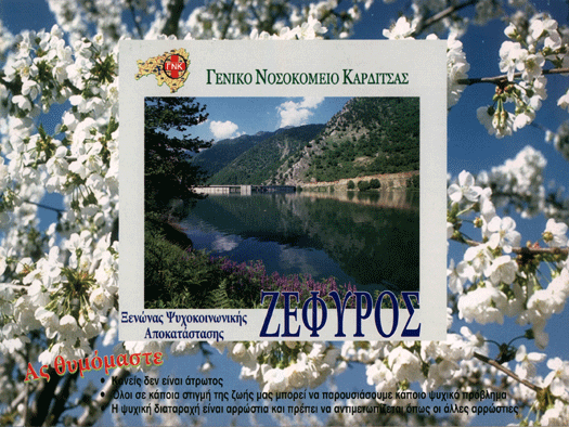 Με επιτυχία και μεγάλη συμμετοχή ο ξενώνας ”Ζέφυρος” του Γ.Ν.Καρδίτσας, διοργάνωσε ημερίδα με αφορμή την Παγκόσμια Ημέρα Ψυχικής Υγείας. Ευχή όλων η ημερίδα αυτή να γίνει θεσμός, και σημείο αναφοράς για τις προσπάθειες που καταβάλλονται για την ανθρώπινη διαβίωση των ατόμων με ψυχική νόσο.