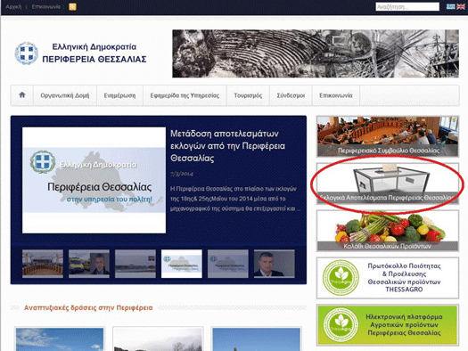 Ο ιστότοπος της Περιφέρεια Θεσσαλίας για τα αποτελέσματα των εκλογών