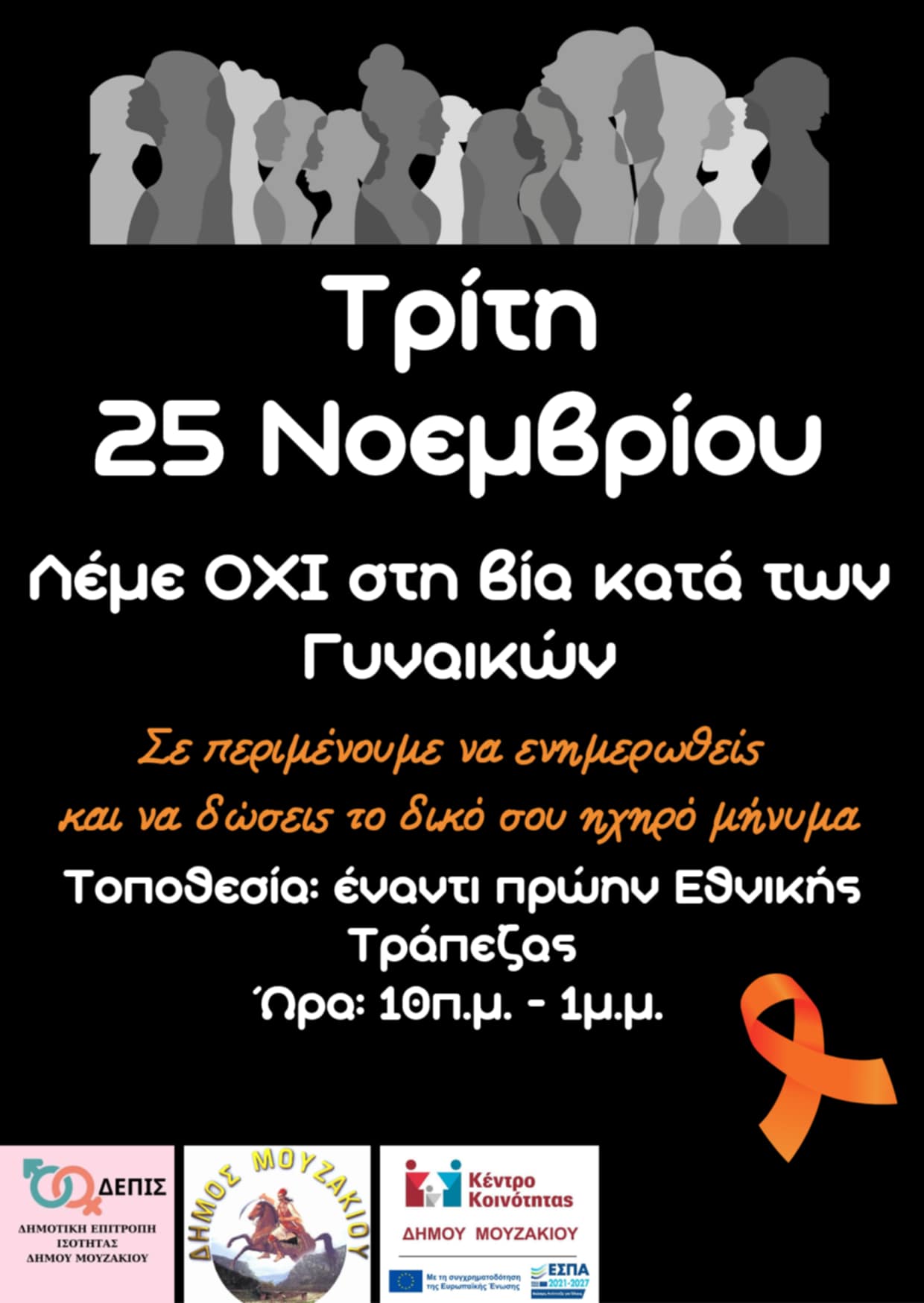 Διπλή δράση ενημέρωσης και ευαισθητοποίησης στο Μουζάκι για την Παγκόσμια Ημέρα για την Εξάλειψη της Βίας κατά των Γυναικών