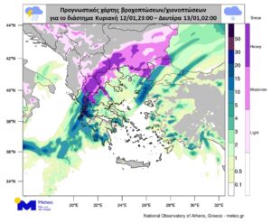 Ισχυρές βροχές και καταιγίδες προβλέπονται αρχικά στο Ιόνιο (κυρίως το νότιο), τα νησιά του βορείου και ανατολικού Αιγαίου, την Πελοπόννησο και βαθμιαία στη Στερεά Ελλάδα, τη Θεσσαλία (κυρίως στα ανατολικά), τις Σποράδες και την Εύβοια.