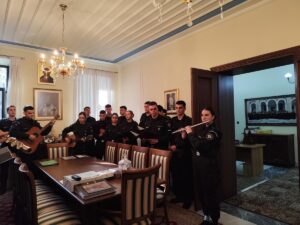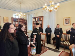 Η παρουσία των δοκίμων δημιούργησε κλίμα χαράς και συγκίνησης, καθώς οι μελωδίες των καλάντων αντήχησαν στους χώρους της Ιεράς Μητροπόλεως, υπενθυμίζοντας το βαθύ πνευματικό νόημα της μεγάλης εορτής των Χριστουγέννων. Στη συνέχεια, ο Σεβασμιώτατος τους υποδέχθηκε με ιδιαίτερη εγκαρδιότητα, απευθύνοντάς τους πατρικές ευχές και λόγους ενθάρρυνσης, και ευχήθηκε σε όλους καλά, ειρηνικά και ευλογημένα Χριστούγεννα, με υγεία και δύναμη στο έργο και στην αποστολή τους.