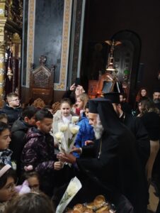 Χρόνια πολλά Σεβασμιώτατε σας αγαπάμε πολύ του είπανε και το εννοούσανε γιατί είναι πάντα δίπλα τους με τις προσευχές του και την αγάπη του. Έδωσαν έτσι με τον δικό τους τρόπο μια χαρούμενη νότα την εορταστική αυτή ημέρα, στον Μητροπολίτη μας.