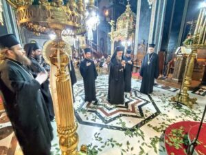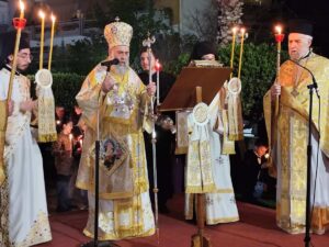 Ο Σεβασμιώτατος Μητροπολίτης μας κ. Τιμόθεος, το Μεγάλο Σάββατο 11 Απριλίου 2026 και ώρα 11:00 μ.μ., μέσα σε κλίμα βαθιάς κατανύξεως και προσμονής της λαμπροφόρου Αναστάσεως, χοροστάτησε στην ακολουθία του Μεσονυκτικού. Πλήθος ευσεβών πιστών προσήλθε στον Ιερό Ναό, συμμετέχοντας με ευλάβεια και συγκίνηση στην ιερά αυτή στιγμή της Εκκλησίας μας, αναμένοντας το χαρμόσυνο μήνυμα της νίκης της ζωής επί του θανάτου.