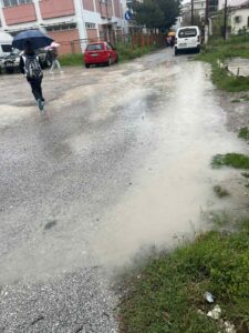 Άλλη μια βροχερή μέρα στο σχολείο, άλλη μια μεγάλη περιπέτεια για μαθητές και γονείς του σχολείου μας. Η πρόσβαση από τη βόρεια είσοδο αποτελεί άθλο, αφού σε κάθε βροχή ο πεζόδρομος που οδηγεί εκεί μετατρέπεται σε λίμνη. Σε συνδυασμό με το παρακείμενο οικόπεδο που πλέον έχει μετατραπεί σε χώρο αποθήκευσης αδρανών υλικών, η κατάσταση που επικρατεί, πλέον έχει γίνει ανυπόφορη.