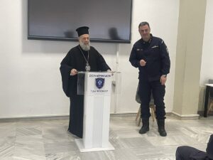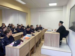 Ο Σεπτός μας Ποιμενάρχης μας είχε την ευκαιρία να επικοινωνήσει άμεσα με τους εκπαιδευόμενους, αναπτύσσοντας ζητήματα που άπτονται της πίστεως, της σύγχρονης κοινωνικής πραγματικότητας και των προκλήσεων που καλούνται να αντιμετωπίσουν οι νέοι άνθρωποι, ιδιαιτέρως μέσα στο πλαίσιο της αποστολής τους ως μελλοντικών στελεχών των Σωμάτων Ασφαλείας.