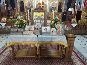 Μετά τη χθεσινή υποδοχή των τιμίων Λειψάνων και την τέλεση του πανηγυρικού Εσπερινού, οι λατρευτικές εκδηλώσεις προς τιμήν των οκτώ τοπικών Αγίων κορυφώθηκαν και ολοκληρώθηκαν σήμερα, Κυριακή 21 Σεπτεμβρίου 2025.