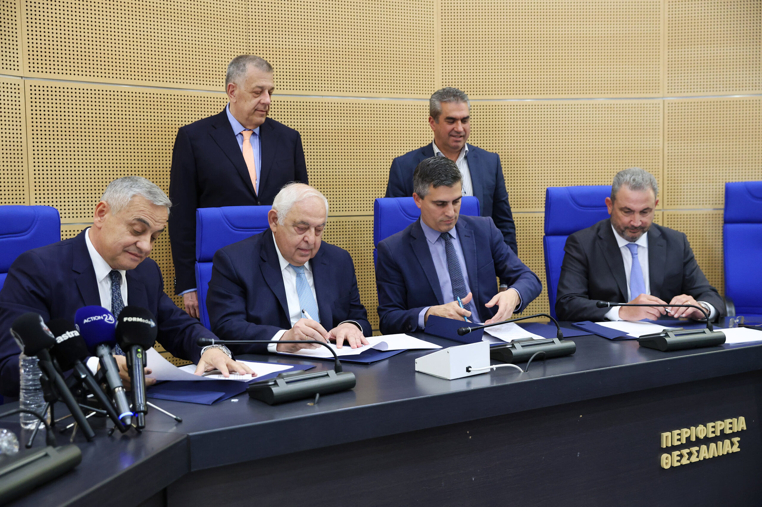 Στην τελετή υπογραφής των συμβάσεων, για τα έργα αποκατάστασης των ζημιών στο οδικό δίκτυο που προκάλεσαν οι κακοκαιρίες «Daniel» και «Elias» σε Θεσσαλία και Στερεά Ελλάδα, η οποία πραγματοποιήθηκε σήμερα Τρίτη στην αίθουσα του Περιφερειακού Συμβουλίου της Περιφέρειας Θεσσαλίας, στη Λάρισα, υποδεχόμενος το υπουργικό κλιμάκιο και τους αναδόχους, παρέστη ο Περιφερειάρχης Θεσσαλίας, Δημήτρης Κουρέτας.