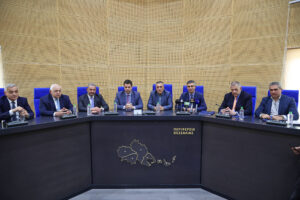 Ο κ. Κουρέτας υποδέχτηκε τον Υπουργό Υποδομών και Μεταφορών, Χρίστο Δήμα, τον Υφυπουργό Νίκο Ταχιάο και τον Γενικό Γραμματέα Υποδομών, Δημήτρη Αναγνώπουλου, όπως και τους εκπροσώπους των αναδόχων Εταιριών ΑΚΤΟΡ, ΑΒΑΞ, ΤΕΡΝΑ.