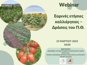 Το Αβερώφειο Αγροδιατροφικό Τεχνολογικό Πάρκο Θεσσαλίας σας προσκαλεί σε Webinar με θέμα “Εαρινές Ετήσιες Καλλιέργειες: Δράσεις του Πανεπιστημίου Θεσσαλίας”.