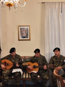 Οι στρατιώτες αντάλλαξαν ευχές με τον Σεβασμιώτατο και του έψαλαν τα παραδοσιακά χριστουγεννιάτικα κάλαντα, μεταφέροντας το εορταστικό κλίμα και το μήνυμα της χαράς και της ελπίδας που συνοδεύει τη Γέννηση του Χριστού.