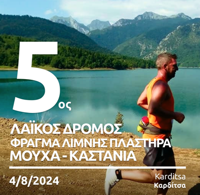 Ο Πολιτιστικός Σύλλογος Καστανιάς-Μούχας «Ο Άγιος Τρύφων», σε συνεργασία με την Περιφερειακή Ενότητα Καρδίτσας και το Δήμο Καρδίτσας, ανακοινώνει την διεξαγωγή του 5ου Λαϊκού Δρόμου στην περιοχή της Λίμνης Πλαστήρα. Ο αγώνας θα πραγματοποιηθεί την Κυριακή 4 Αυγούστου στις 09:30 π.μ. και θα περιλαμβάνει τις εξής διαδρομές: