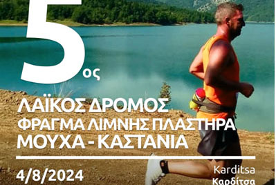 Ο Πολιτιστικός Σύλλογος Καστανιάς-Μούχας «Ο Άγιος Τρύφων», σε συνεργασία με την Περιφερειακή Ενότητα Καρδίτσας και το Δήμο Καρδίτσας, ανακοινώνει την διεξαγωγή του 5ου Λαϊκού Δρόμου στην περιοχή της Λίμνης Πλαστήρα. Ο αγώνας θα πραγματοποιηθεί την Κυριακή 4 Αυγούστου στις 09:30 π.μ. και θα περιλαμβάνει τις εξής διαδρομές: