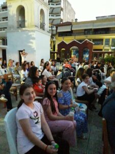 Στις 8.30 το βράδυ «πλημμύρισε» ο προαύλιος χώρος του Ιερού Ναού, από τα υπέροχα προσωπάκια των παιδιών του κατηχητικού. Από τις ευλογημένες οικογένειες που φροντίζουν με πολύ αγάπη να έχουν τα παιδιά τους πνευματικά εφόδια και να βρίσκονται πάντα κοντά στην Εκκλησία του Χριστού, φέρνοντας πάντα τα παιδάκια τους στο κατηχητικό της ενορίας τους γιατί ξέρουν την σπουδαιότητα του έργου της κατηχήσεως και τα οφέλη που θα έχουν από αυτό.