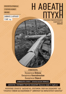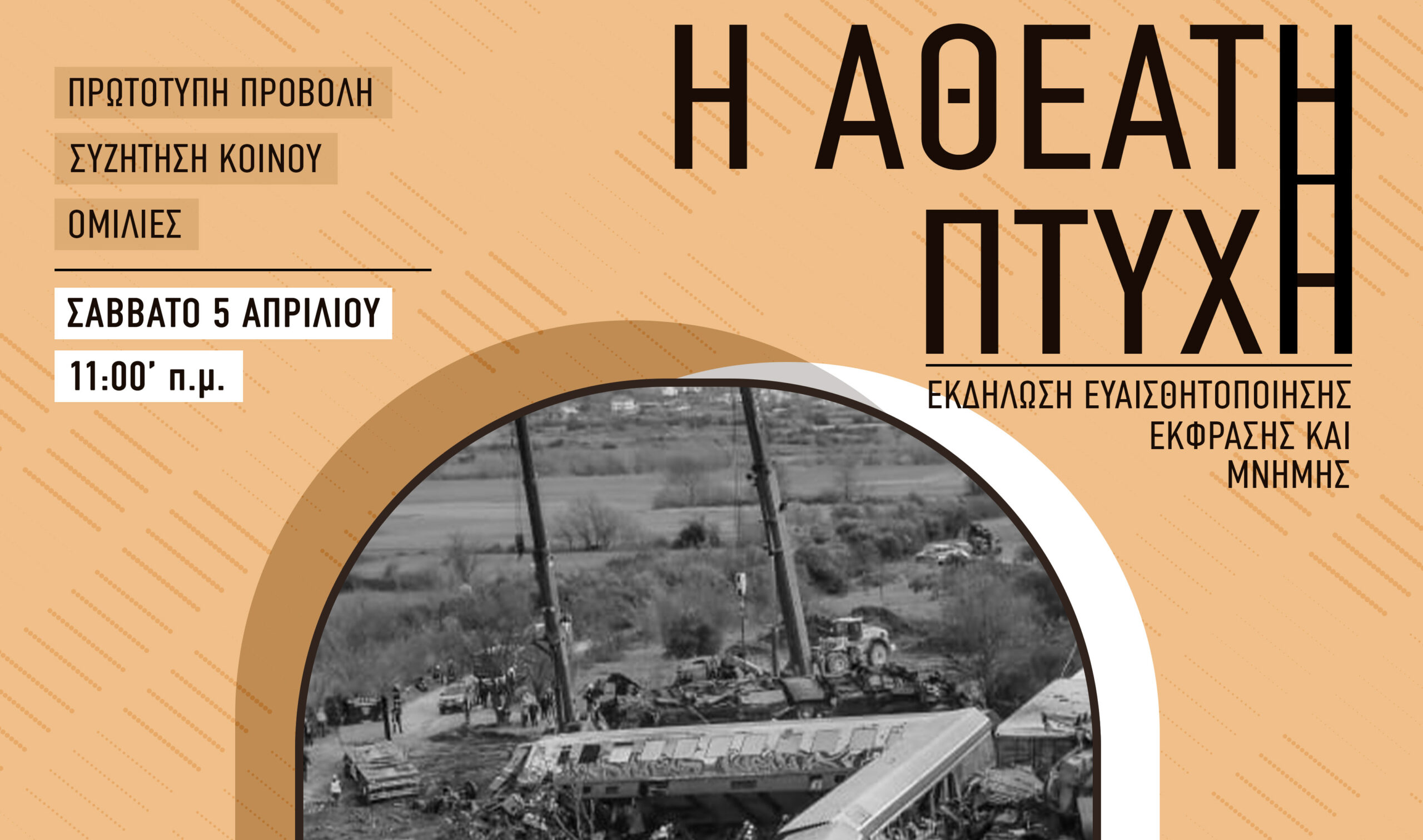 Αναλογιζόμενοι το τραγικό δυστύχημα των Τεμπών και τα συμπεράσματα που απορρέουν από αυτό, ο Φοιτητικός Σύλλογος «Δασολογίας, Επιστημών Ξύλου και Σχεδιασμού» και ο «Σύλλογος Γονέων και Κηδεμόνων 5ου Δημοτικού και Νηπιαγωγείου Καρδίτσας» διοργανώνουν εκδήλωση με τίτλο «Η Αθέατη Πτυχή» το Σάββατο 5 Απριλίου και ώρα 11:00’ π.μ. στο αμφιθέατρο του κτιρίου Γ’ των εγκαταστάσεων του τμήματος «Δασολογίας, Επιστημών Ξύλου και Σχεδιασμού» (Βασίλειου Γρίβα 11 στην Καρδίτσα). Σε αυτήν θα παρουσιαστεί πρωτότυπη προβολή σχετική με το δυστύχημα, θα ακουστούν απόψεις συγγενών θυμάτων των Τεμπών ενώ μέρος της εκδήλωσης θα διατεθεί για τοποθετήσεις και διάλογο μεταξύ των παρευρισκόμενων και των συγγενών. Στον χώρο της εκδήλωσης θα εκτίθενται έργα από τα παιδιά του 5ου Δημοτικού Σχολείου Καρδίτσας.