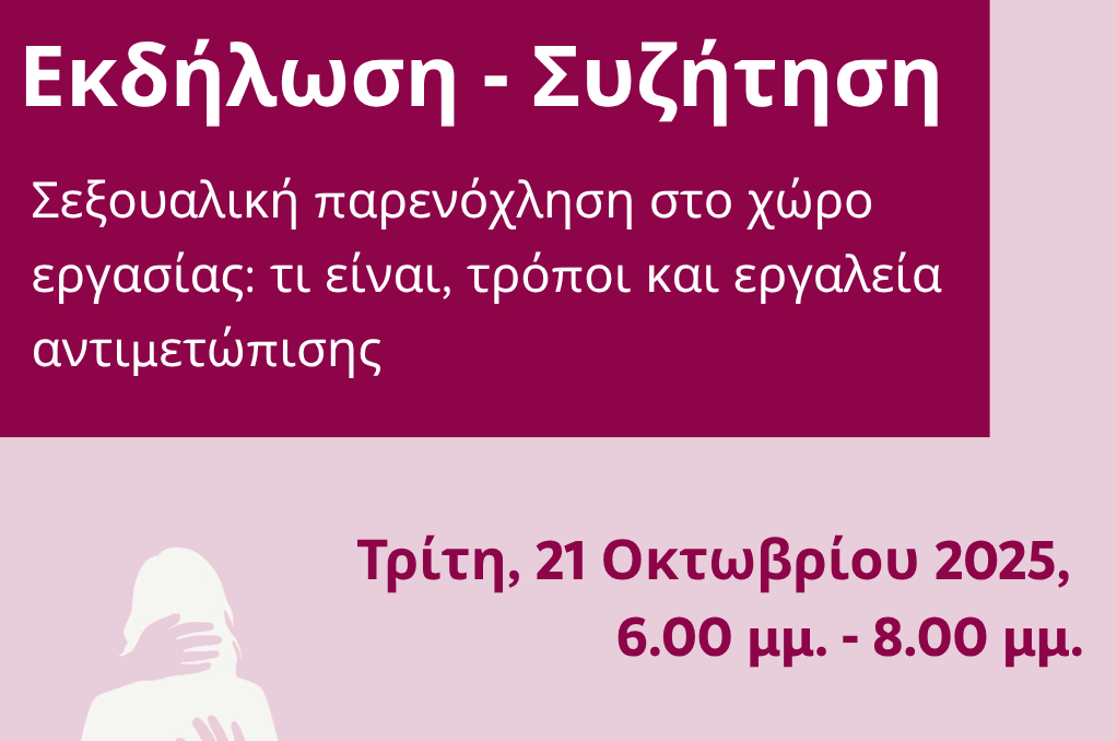 Το Εργατικό Κέντρο Καρδίτσας, το Κέντρο Γυναικών Καρδίτσας και το Γραφείο του ιδρύματος Friedrich–Ebert–Stiftung (FES) στην Αθήνα διοργανώνουν εκδήλωση – συζήτηση με θέμα «σεξουαλική παρενόχληση στον χώρο εργασίας: τί είναι, τρόποι και εργαλεία αντιμετώπισης».