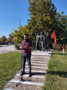 Εκεί, χαιρετισμός έγινε από τον πρόεδρο του παραρτήματος ΠΕΑΕΑ – ΔΣΕ, Σωτήρη Στουρνάρα, ενώ η ομιλία έγινε από τον Βασίλη Ελευθερίου, μέλος της ΤΕ Καρδίτσας του ΚΚΕ.