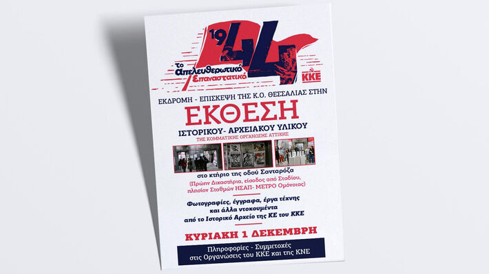 Εκδρομή – επίσκεψη την Κυριακή 1 Δεκέμβρη στην Έκθεση ιστορικού – αρχειακού υλικού για «Το απελευθερωτικό – επαναστατικό 1944» της Κομματικής Οργάνωσης Αττικής διοργανώνει η Κομματική Οργάνωση Θεσσαλίας του ΚΚΕ.