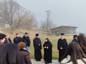 Πριν την αναχώρηση από το Μοναστήρι, ο σεπτός Ποιμενάρχης μας ευχαρίστησε τον Σεβασμιώτατο Μητροπολίτη Δημητριάδος και Αλμυρού κ. Ιγνάτιο καθώς και την Ηγουμένη της Ιεράς Μονής Θεοδέκτη μοναχή, για την θερμή τους υποδοχή.