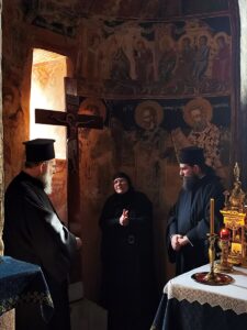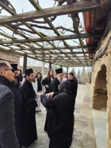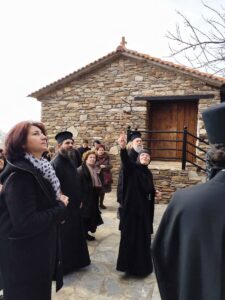 Φτάνοντας στο μοναστήρι μετά από 2.30 ώρες περίπου, μας υποδέχθηκε η φιλόξενη και γλυκύτατη Ηγουμένη μοναχή Θεοδέκτη. Ξεναγηθήκαμε στο πανέμορφο μοναστήρι, ακούσαμε για την ιστορία του και μετά το αβραμιαίο γεύμα, απολαύσαμε τις ομορφιές του μοναστηριού.