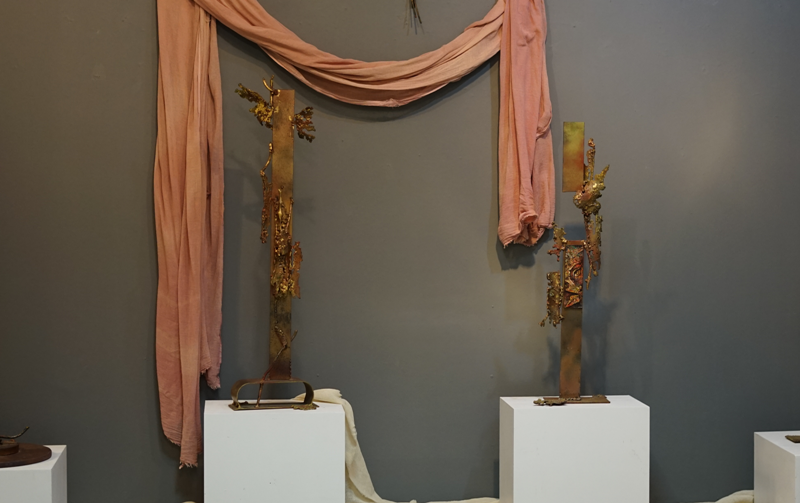 Η αίθουσα της γκαλερί πλημμύρισε κόσμο που εντυπωσιάστηκε από τις μορφές, τις υφές και τα υλικά της γλυπτικής του καλλιτέχνη.