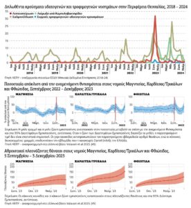 - Παρατηρήθηκε αύξηση της ολικής θνησιμότητας πάνω από την αναμενόμενη, στη Μαγνησία κατά 39%, στην Καρδίτσα/Τρίκαλα κατά 40% και στη Φθιώτιδα κατά 57%.