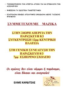 Να είμαστε ΟΛΟΙ παρόντες στη Γενική Συνέλευση της ΕΛΜΕ την Παρασκευή 8/3 στις 7μμ στο Εσπερινό Γυμνάσιο. Για να αποφασίσουμε την επαναπροκήρυξη της απεργίας αποχής. Οι αποφάσεις -προτάσεις της Γενικής μας Συνέλευσης θα μεταφερθούν στη συνέλευση των προέδρων των ΕΛΜΕ της χώρας το Σάββατο 9/3 στην Αθήνα.