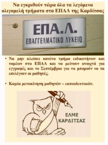 - Να εγκριθούν τώρα όλα τα ολιγομελή τμήματα στα ΕΠΑΛ