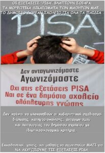 Εκπαιδευτικοί, γονείς, και μαθητές να αγωνιστούμε ΜΑΖΙ για ΝΑ ΑΚΥΡΩΣΟΥΜΕ ΤΙΣ ΕΞΕΤΑΣΕΙΣ PISA.