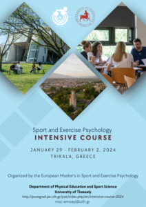 Στο ΤΕΦΑΑ του Πανεπιστημίου Θεσσαλίας από τις 29 Ιανουαρίου έως τις 2 Φεβρουαρίου 2024, θα φιλοξενηθεί το “Intensive Course in Sport and Exercise Psychology-2024”.