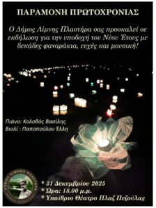 Στις 31/12, λοιπόν, στις 18:00 το απόγευμα, στο θέατρο Καλυβίων Παεζούλας, θα γίνει η εκδήλωση του Δήμου με τα Φαναράκια των Ευχών.
