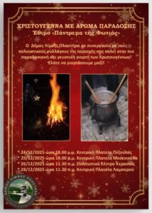 Απάντηση: Το φετινό πρόγραμμα Χριστουγεννιάτικων εκδηλώσεων του Δήμου Λίμνης Πλαστήρα, που υλοποιείται σε συνεργασία με τα Τοπικά Συμβούλια και τους Πολιτιστικούς Συλλόγους, είναι ένα πολυήμερο ταξίδι γιορτής, παράδοσης και συμμετοχής.