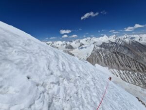 Τώρα που πηγαίναμε, φθάναμε σε ένα δύσκολο σημείο, σε κάποιο αδιαπέραστο σημείο από τη βόρεια πλευρά, που είχαν γίνει οι πρώτες απόπειρες το 2016 και μετά το 2022, όπου ήταν αδύνατο να συνεχίσουμε για την κορυφή.