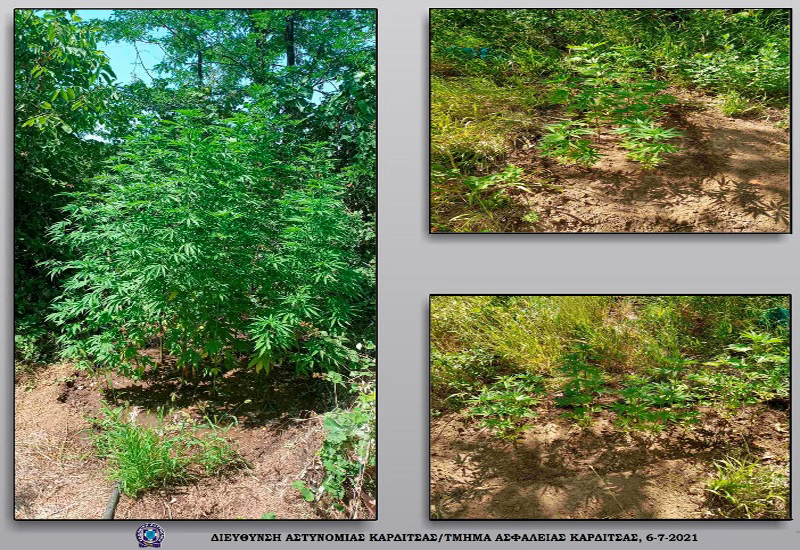 Εντοπίστηκαν από αστυνομικούς του Τμήματος Ασφάλειας Καρδίτσας, ύστερα από κατάλληλη αξιοποίηση στοιχείων, -2- φυτείες δενδρυλλίων κάνναβης σε δασικές περιοχές του νομού Καρδίτσας και συνελήφθη, στις 05-07-2021 το μεσημέρι στον περιβάλλοντα χώρο της μίας φυτείας, από ενεδρεύοντες αστυνομικούς της προαναφερόμενης υπηρεσίας, ένας ημεδαπός, σε βάρος του οποίου σχηματίστηκε δικογραφία για παραβάσεις της νομοθεσίας περί ναρκωτικών.