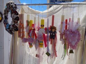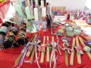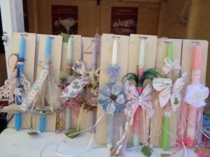 Μια μεγάλη ποικιλία από λαμπάδες για κάθε ηλικία και για κάθε γούστο, κεράκια, εντυπωσιακά στεφάνια, βραχιόλα και άλλα κοσμήματα, σαπουνάκια και πολλά ακόμη διακοσμητικά είδη, θα τα βρείτε όλα εκεί, στο περίπτερο της Φλόγας, στην κεντρική πλατεία της πόλης, καθ ΄ όλη τη διάρκεια της ημέρας.