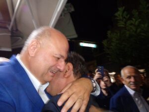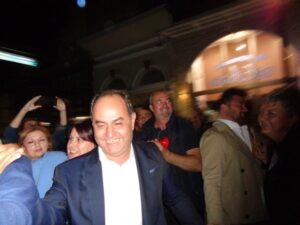 Ο δήμαρχος έφθασε στο εκλογικό κέντρο γύρω στις 11:00 το βράδυ δεχόμενος τα συγχαρητήρια του πλήθους κόσμου που είχε συγκεντρωθεί εκεί.