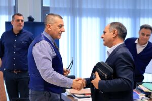 Στην υπογραφή της σύμβασης παρέστη και ο Αντιπεριφερειάρχης ΠΕ Καρδίτσας Κώστας Τέλλιος.