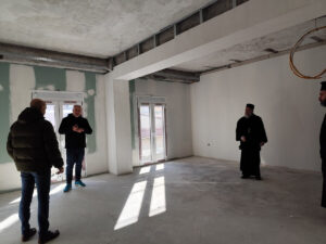 Σύμφωνα με τη σημερινή επίσκεψη του Σεβασμιωτάτου Μητροπολίτη μας, στο κτίριο επί των οδών Πίνδου και Μπιζανίου, δίπλα στον Ιερό Ναό Ευαγγελιστρίας, οι εργασίες που τελειοποιούνται, είναι η ψύξη και θέρμανση του κτιρίου, η σύνδεση των υδραυλικών και ηλεκτρολογικών συστημάτων, η προετοιμασία των δαπέδων για τις απαιτούμενες πλακοστρώσεις, τα συστήματα αποχέτευσης, καθώς και η τοποθέτηση κουφωμάτων. Σύμφωνα με τον υπεύθυνο Μηχανικό οι εργασίες συνεχίζονται καθημερινά και στην πορεία θα τοποθετηθούν και οπτικές ίνες για συστήματα επικοινωνίας εσωτερικών και εξωτερικών χώρων.