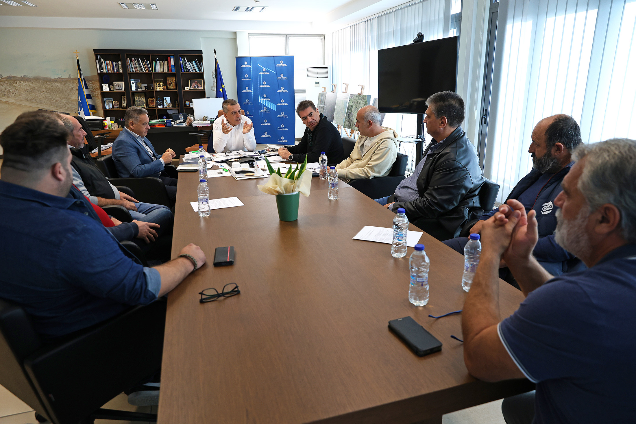 Είχε προηγηθεί συνάντηση του Περιφερειάρχη Θεσσαλίας Δημήτρη Κουρέτα, παρουσία υπηρεσιακών παραγόντων της ΔΑΟΚ με κτηνοτρόφους από την περιοχή της Τερψιθέας (φώτο), οι οποίοι αντιδρούν στη λειτουργία μονάδας εμπορίας ζώντων ζώων στην περιοχή τους, φοβούμενοι εξάπλωση της ευλογιάς.