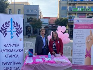 Κάναμε μια εκδήλωση στο Μουζάκι, μία στο Αγναντερό και μία στην πόλη της Καρδίτσας, μαζί με άλλους φορείς έτσι ώστε όλοι μαζί να διαδώσουμε το μήνυμα ότι η πρόληψη και η έγκαιρη διάγνωση ισοδυναμούν με ίαση για τον καρκίνο του μαστού.