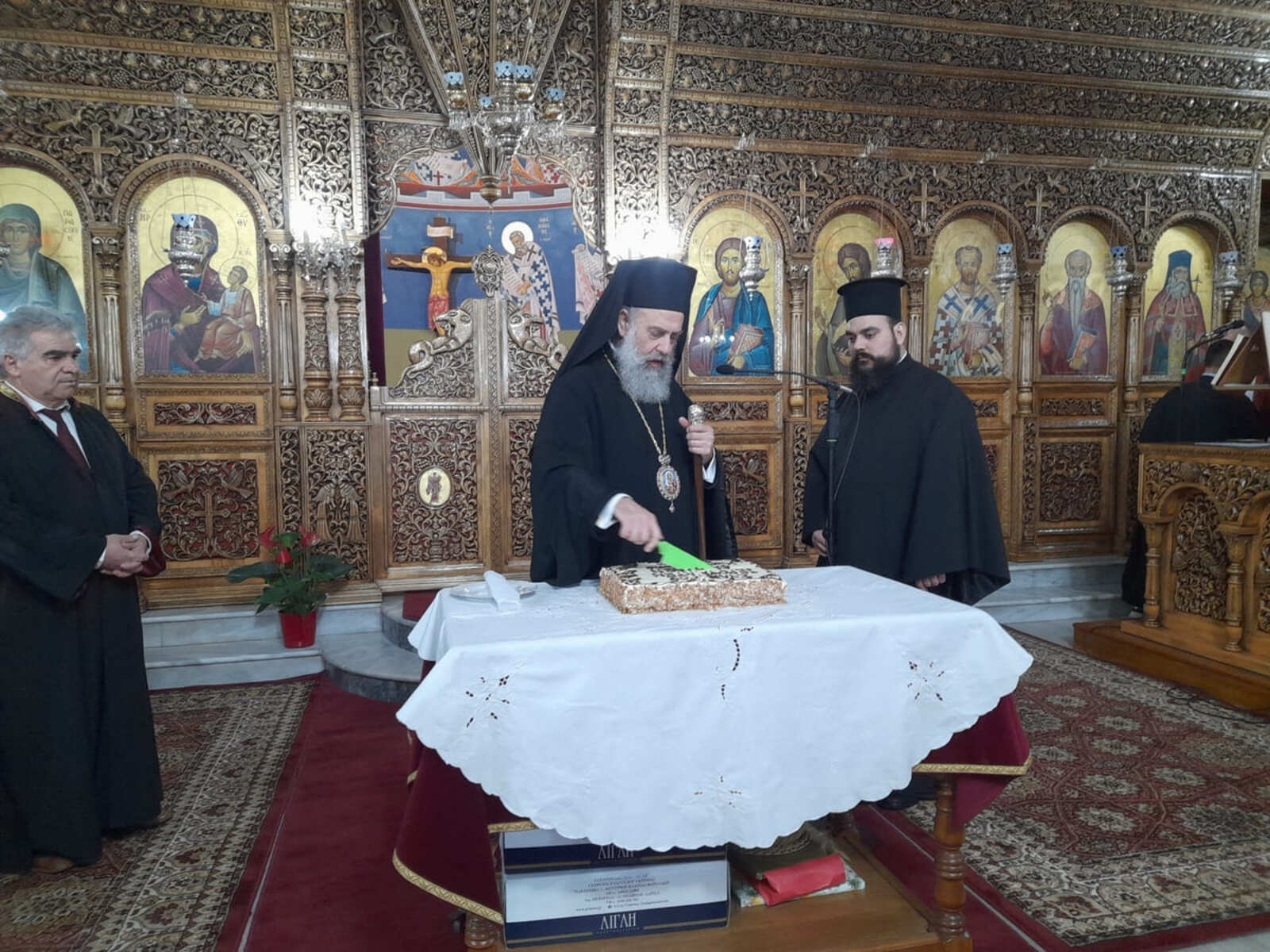 Ο Σεβασμιώτατος Μητροπολίτης μας κ. Τιμόθεος, την Κυριακή 11 Φεβρουαρίου 2024, το εσπέρας και ώρα 6:00 μ.μ., παρέστη συμπροσευχόμενος κατά την Ακολουθία του Εσπερινού στον Ιερό Ναό Αγίας Παρασκευής Φαρσάλων. Ακολούθως ευλόγησε την βασιλόπιτα του Συλλόγου Ιεροψαλτών Φαρσάλων “Ρωμανός ο Μελωδός”. Αφού τους ευχήθηκε καλή και ευλογημένη χρονιά, τους ευχαρίστησε που στέκονται στήλη ακλόνητη σε κάθε ενορία της Αρχιερατικής Περιφέρειας Φαρσάλων. Επίσης τους προέτρεψε να ενθαρρύνουν τα νέα παιδιά να ανεβαίνουν στα αναλόγια, ώστε να συνεχιστεί η τέχνη της βυζαντινής μουσικής.