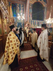Ο Σεβασμιώτατος Μητροπολίτης μας κ. Τιμόθεος, το απόγευμα της Τετάρτης 29 Ιανουαρίου 2025, χοροστάτησε στην ακολουθία του Εσπερινού, επί τη Συνάξει των Αγίων τριών Ιεραρχών, Βασιλείου του Μεγάλου, Γρηγορίου του Θεολόγου και Ιωάννου του Χρυσοστόμου, Προστατών της Ελληνικής Παιδείας, στον Ιερό Ναό Αγίων Σοφίας, Ιωάννου Χρυσοστόμου και Σπυρίδωνος Καρδίτσης.