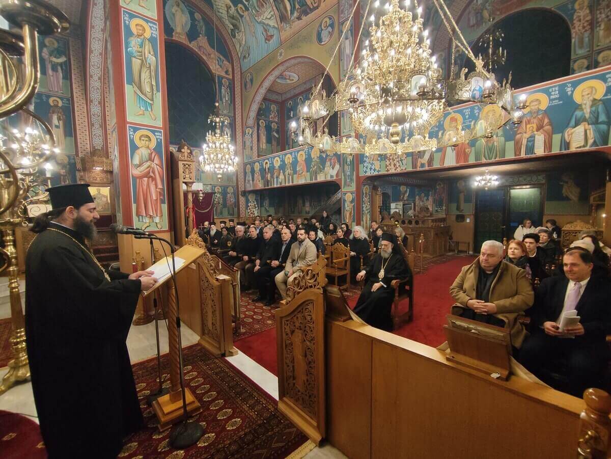 Ο Σεβασμιώτατος στην ομιλία του, ευχαρίστησε θερμά τον Ελλογιμώτατο κ. Νικόλαο Κόιο και ανέφερε οι Άγιοι Ιεράρχες, όπως ο Άγιος Βασίλειος, ο Άγιος Γρηγόριος ο Θεολόγος και ο Άγιος Ιωάννης ο Χρυσόστομος, μας διδάσκουν ότι η ζωή μας πρέπει να είναι γεμάτη από έργα που προέρχονται από την πίστη μας, και ότι πρέπει να αγωνιζόμαστε για την ηθικότητα και την πνευματική μας ανάπτυξη. Υπογράμμισε την ανάγκη να γίνουμε “θεάνθρωποι” και “άνθρωποι του Θεού”, ενθαρρύνοντας τους πιστούς να αγωνίζονται μέσα στην πίστη και την εμπιστοσύνη τους στον Ιησού Χριστό.