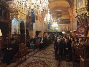 Μετά την ακολουθία, στον ως άνω Ιερό Ναό, απηύθυνε το καθιερωμένο εσπερινό του κήρυγμα στους πιστούς, στο πλαίσιο του κύκλου ομιλιών με θέμα «Διδαχή στην προς Ρωμαίους Επιστολή του Αποστόλου Παύλου», που πραγματοποιείται κάθε Κυριακή.